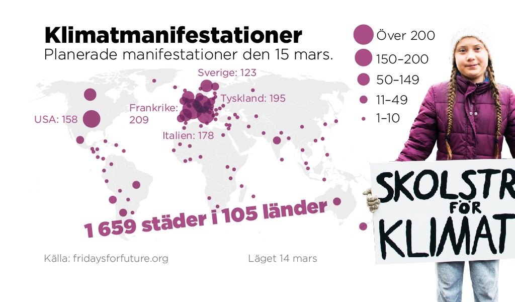 För andra gången samlas svenskar över hela landet på fredag i en klimatstrejk. Internationellt planeras manifestationer i nästan hundra länder inspirerade av miljöaktivisten Greta Thunberg.
