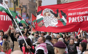 Första maj med krav på ett fritt Palestina.