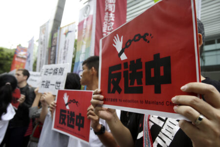 Oron i Hongkong en varningssignal i Taiwan