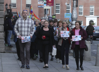 Röda handavtryck för Lyra McKee