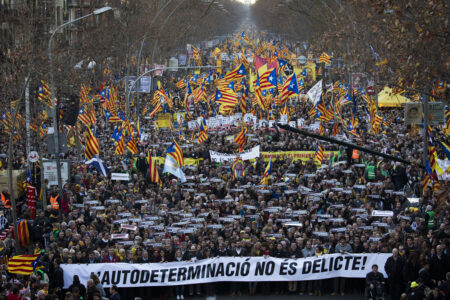 Massprotest mot separatisträttegång i Spanien